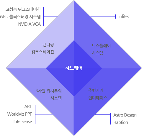 그래픽 서버 컴퓨터, 디스플레이 시스템, 소프트웨어, 콘텐츠, 트래킹 등을 포함한 토탈 솔루션을 제공합니다.